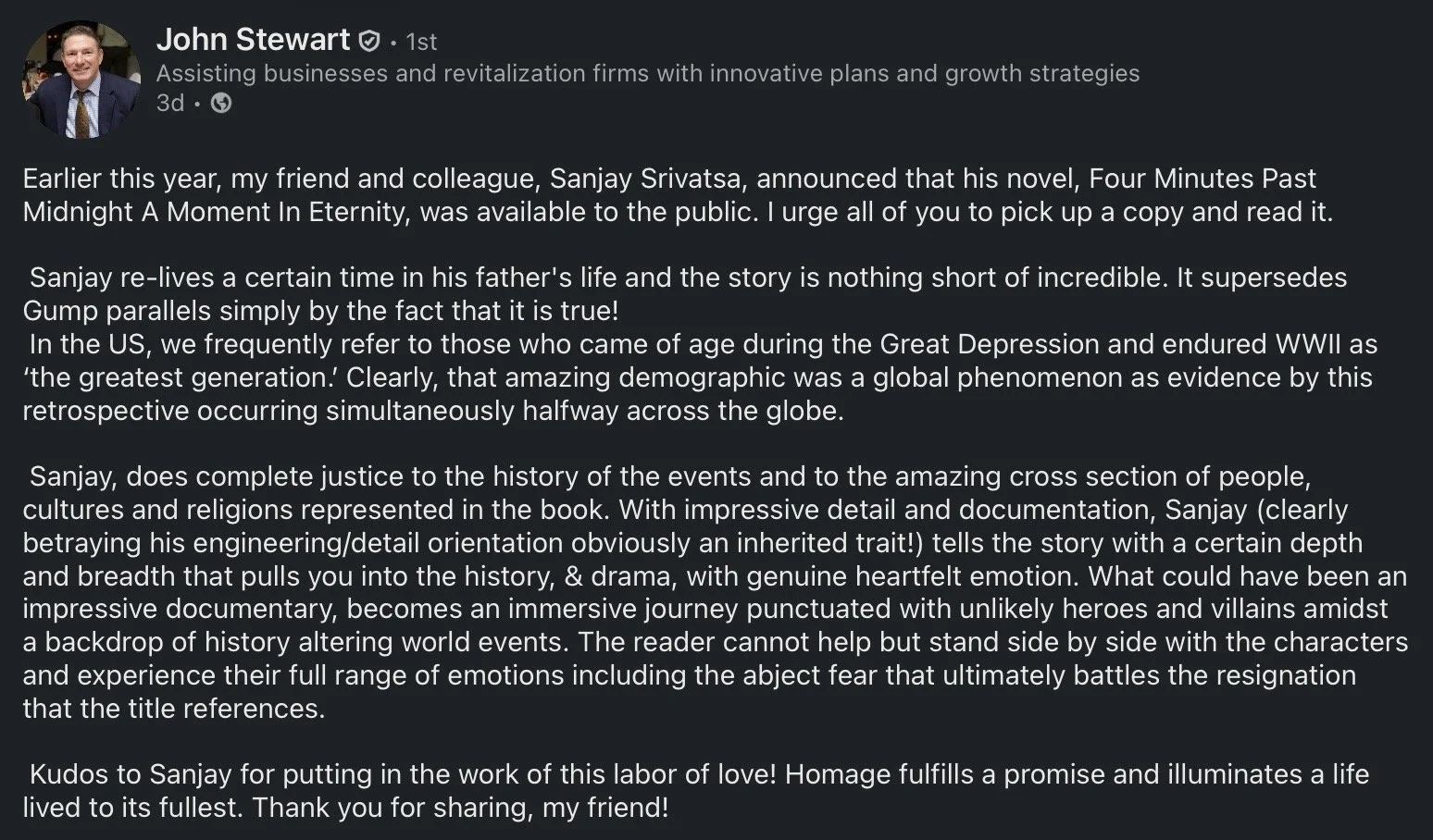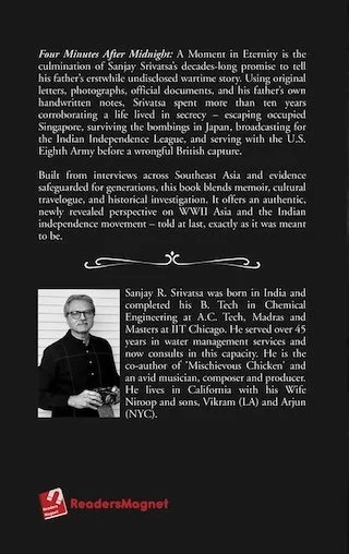 This story was told to me by him. Due the clandestine nature and classified aspects of his life at that time, my father requested me to write his story only twenty years after his demise which was in 1988. This was Many knew he was incarcerated, but the truth is only known to our closest family. He carried the weight of that to his grave. It took me over a decade to corroborate his travelog including numerous live interviews with people who knew him in various parts of Southeast Asia. I also possess corroborating evidence such as, original letters, photos from the Eighth Army, IIL and other pertinent official documents of the period which will be included as exhibits. It also includes his handwritten synopsis. I’ve titled the book “Four Minutes after Midnight: A Moment in Eternity” referring to the time of his execution.